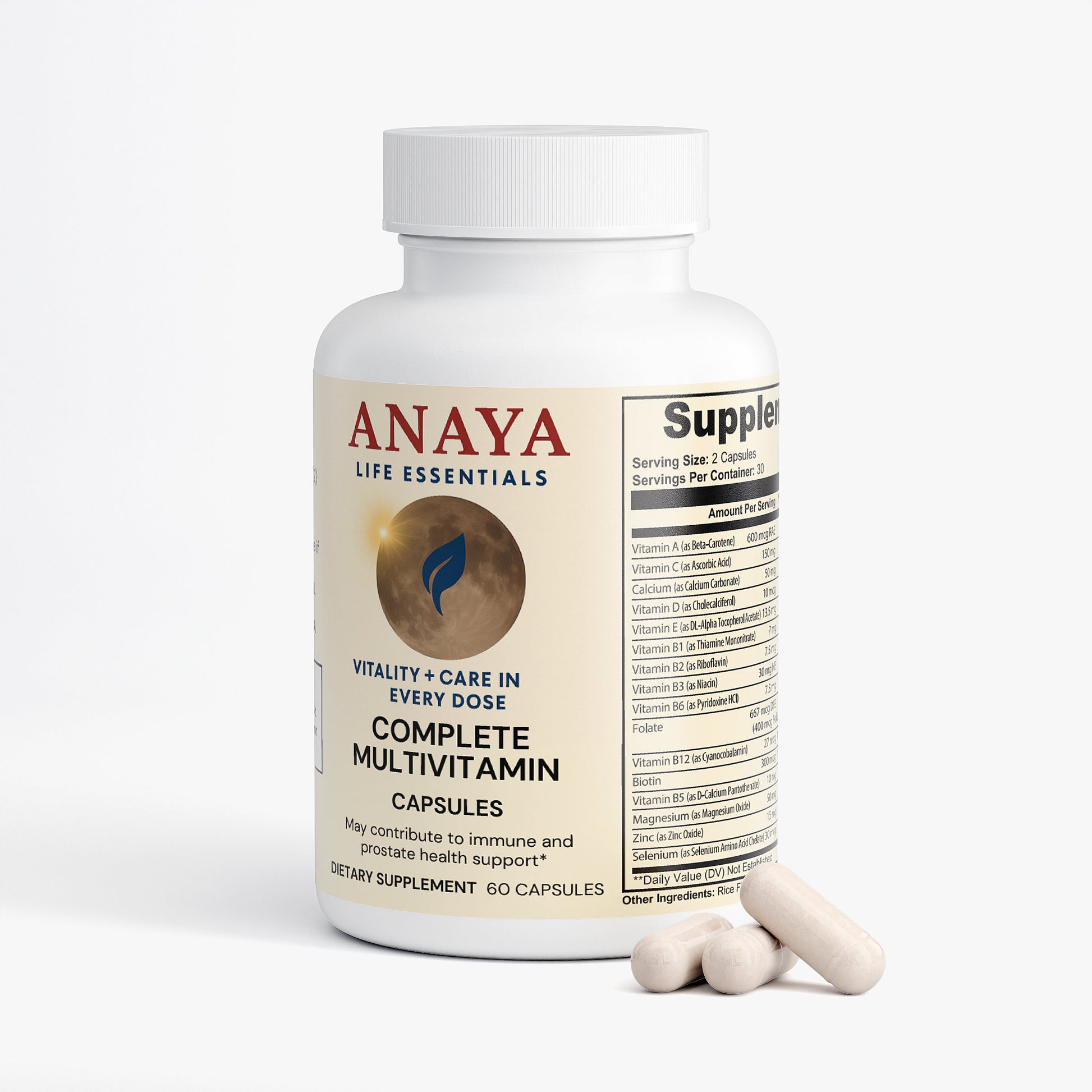 The word “complete” doesn’t do this quality multivitamin justice. That is because our multivitamin supplement comes loaded with all the crucial vitamins and minerals you need—including a vitamin B complex. But we didn't stop there. This daily vitamin also offers an entire range of natural antioxidants, like green tea, known for slowing the progression of illness and even aging.